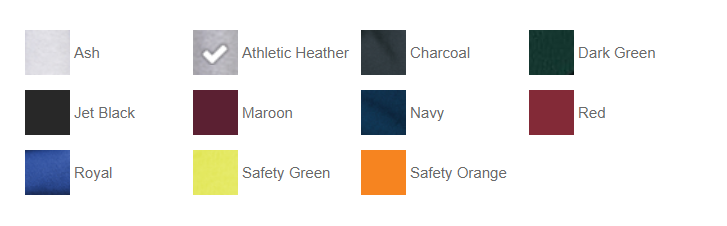 This unisex 50/50 cotton/poly crewneck sweatshirt will be offered in a variety of colors. The left chest and big back will be printed in white or black depending on shirt color.