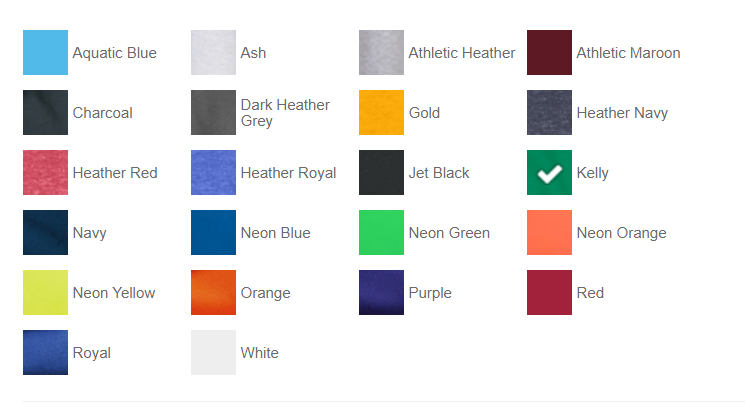 This unisex 100% cotton tshirt will be offered in a variety of colors. The left chest and big back will be printed in white or black depending on shirt color.